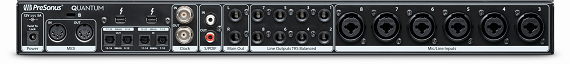 对于绝大多数录音环境来说的一个绝佳选择,26x32 通道的Quantum 是 PreSonus 当前传输速度最快、音质最好的音频/MIDI接口,利用高速雷电2接口的bus总线和一个可以满足最基本需求的、直接连到DAW(无DSP添加)的信号通道达到超低延迟。前沿的 24-bit,192 kHz 采样率转换器带有120 dB 动态范围和PreSonus XMAX话放,二者联合起来传递完美的音质。如果用户需要更多的输入/输出通道,只需将最多4台 Quantum 音频接口通过雷电接口连接起来,这样就可以获得高达 96x96 条通道系统。Quantum提供两条自合话筒/乐器/线路输入和六条组合话筒/线路输入,每条带有数字控制的XMAX放大器和+48V幻象电源。用户还将得到两条TRS主输出,上述提到的8条TRS线路输出和两条独立的耳机输出,带有音量控制。
