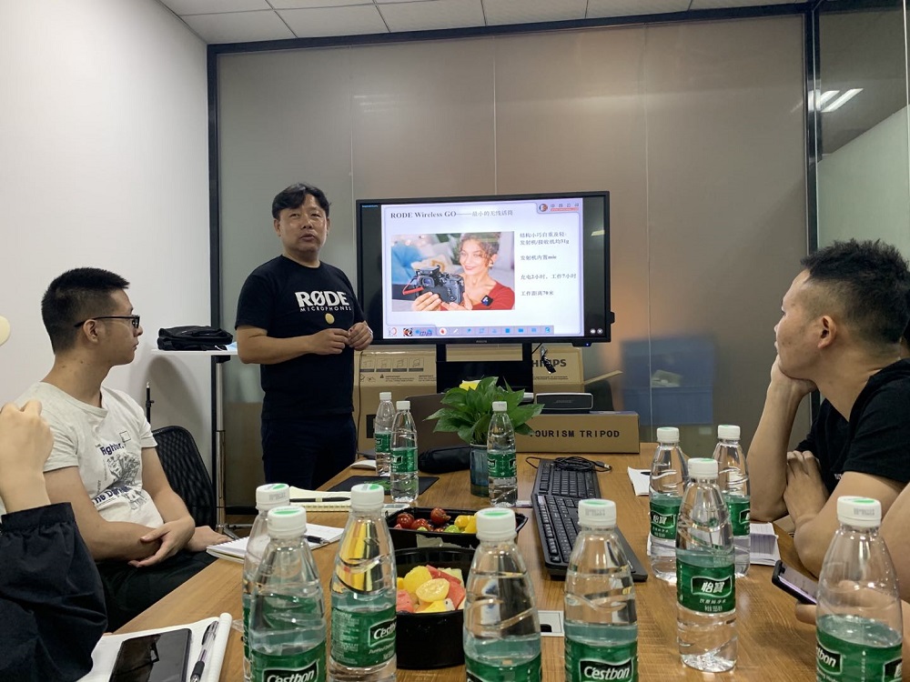 作为罗德在中国大陆、香港澳门的独家代理商,中音公司会定期拜访经销商,在了解当地市场情况的同时也对经销商们进行专业的系统培训。这一次,中音罗德品牌销售经理王浩先生,来到了深圳信义得科技有限公司。